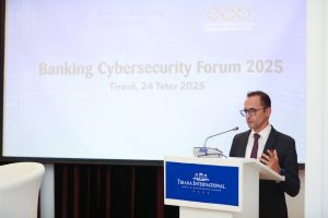 The Director General of the National Cyber Security Authority (AKSK), Mr. Igli Tafa, participated in the forum “Cybersecurity in the Banking Sector 2025”, organized by the Albanian Association of Banks in cooperation with the Kosova Banking Association, as part of Cybersecurity Awareness Month.